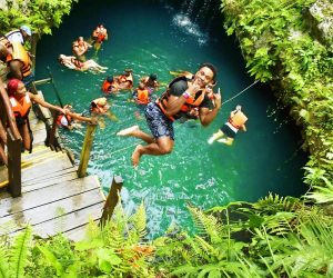 Embárcate en una experiencia de cenote adventuring en la jungla maya. Disfruta de un cenote con cascada y uno privado, nada en aguas turquesa, salta desde acantilados y explora con snorkel. Completa tu día con tirolesas emocionantes y una degustación de tequilas. ¡Una aventura mágica te espera!
