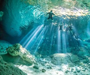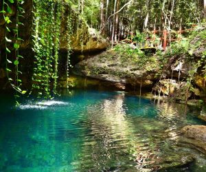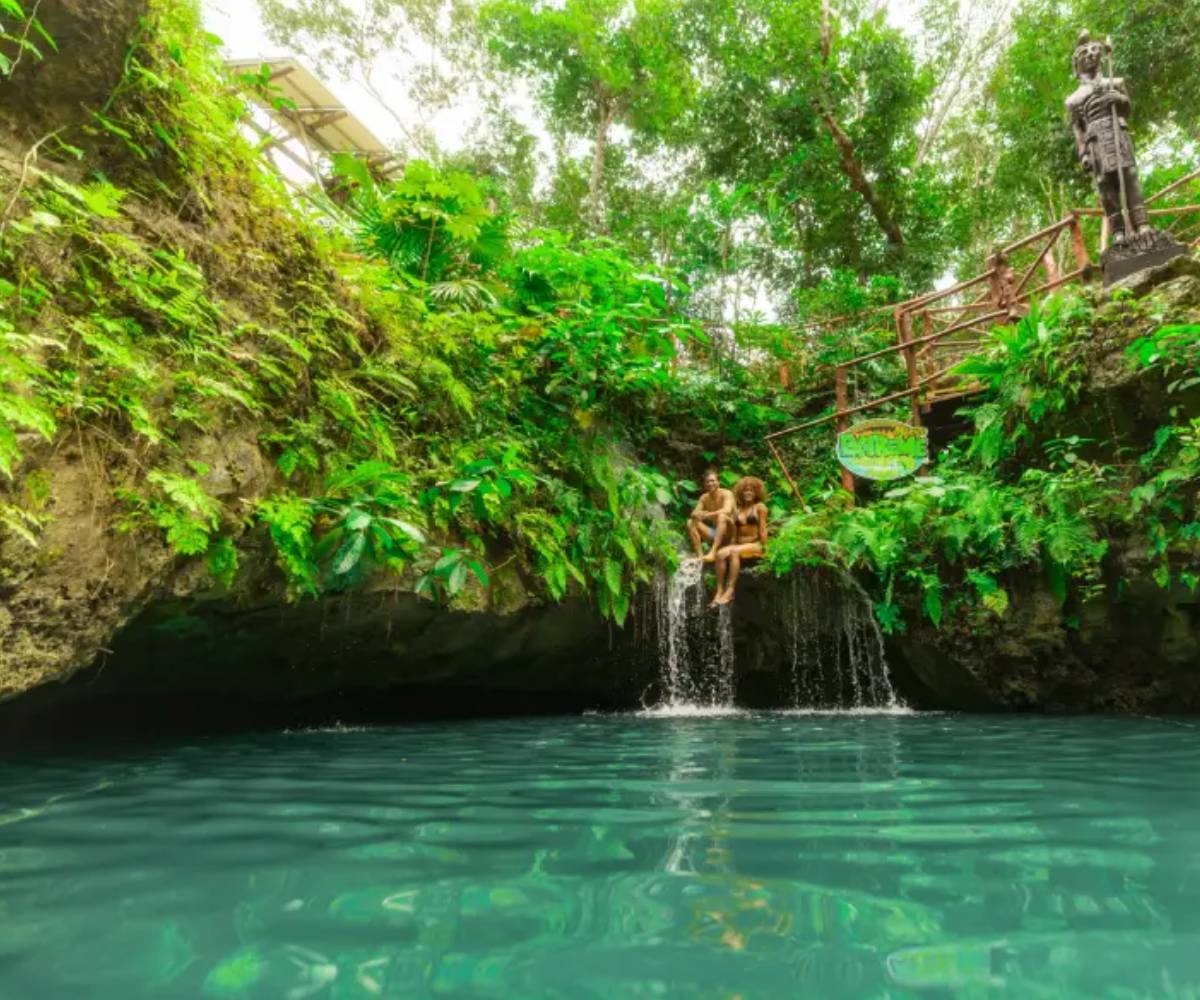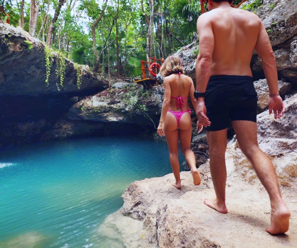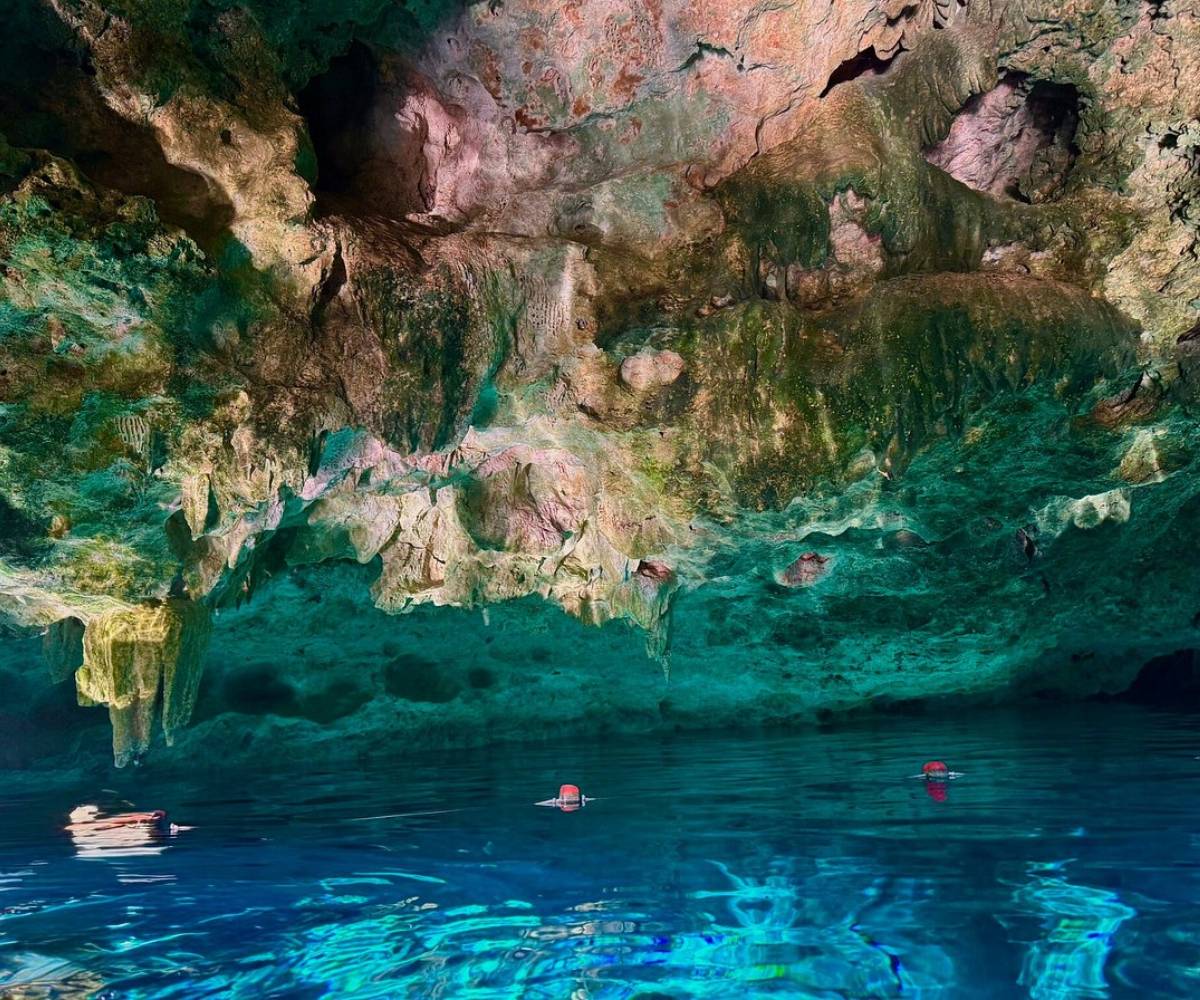 Luego, vive una experiencia de cenote adventuring privado en un ambiente mágico. Nada en aguas azules y refrescantes, desafía tu valentía saltando desde un pequeño acantilado, y explora el fondo con snorkel. Este cenote ofrece un entorno ideal para disfrutar con tus seres queridos.