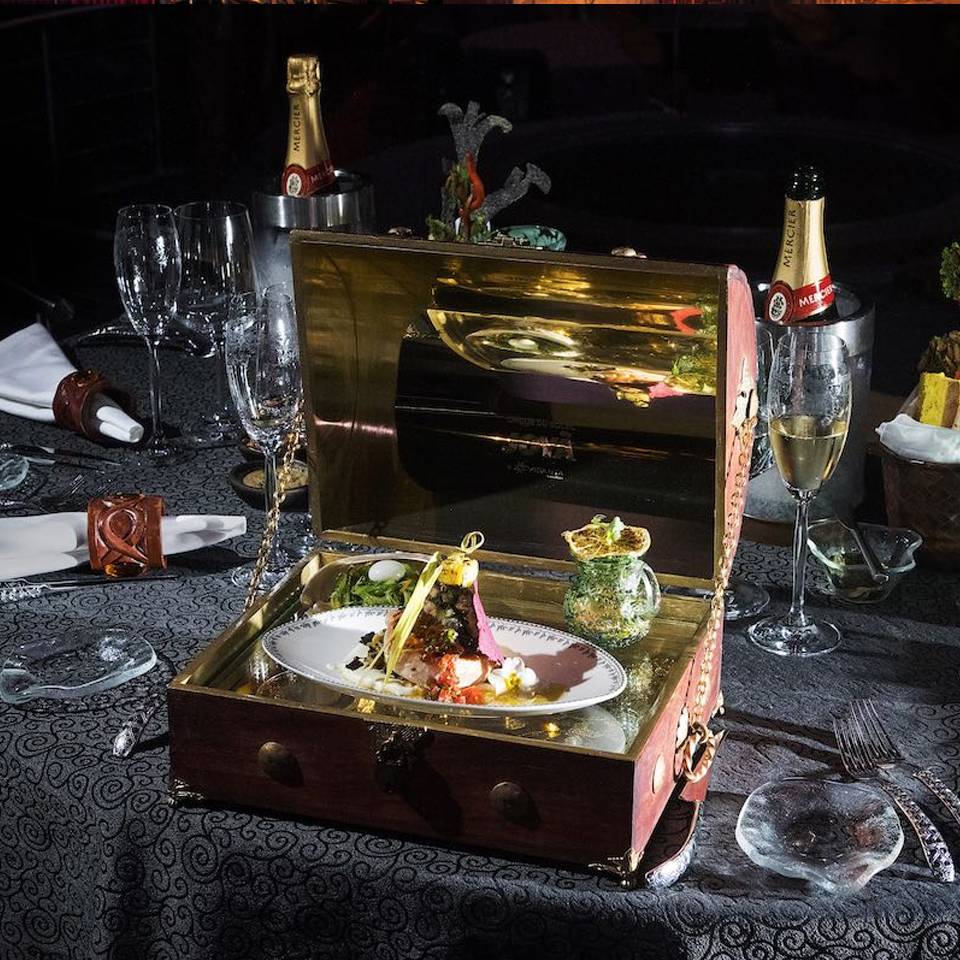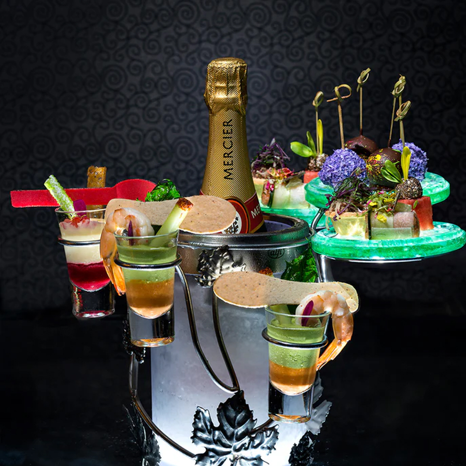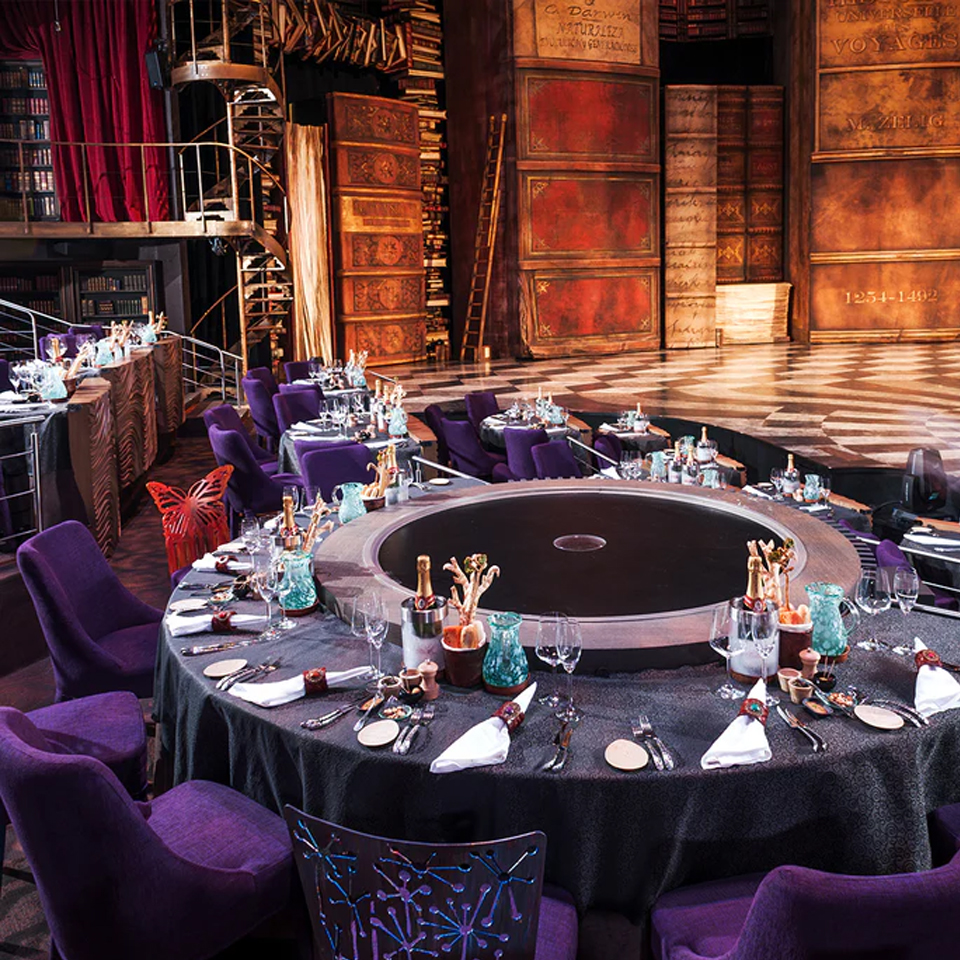 Antes del espectáculo, los asistentes pueden disfrutar de una cena gourmet de tres tiempos, diseñada para complementar la temática del show. Los menús incluyen opciones vegetarianas, veganas y sin gluten, adaptándose a diversas preferencias y necesidades dietéticas. Durante la cena, se ofrece un preludio musical en vivo, preparando el ambiente para la función principal.