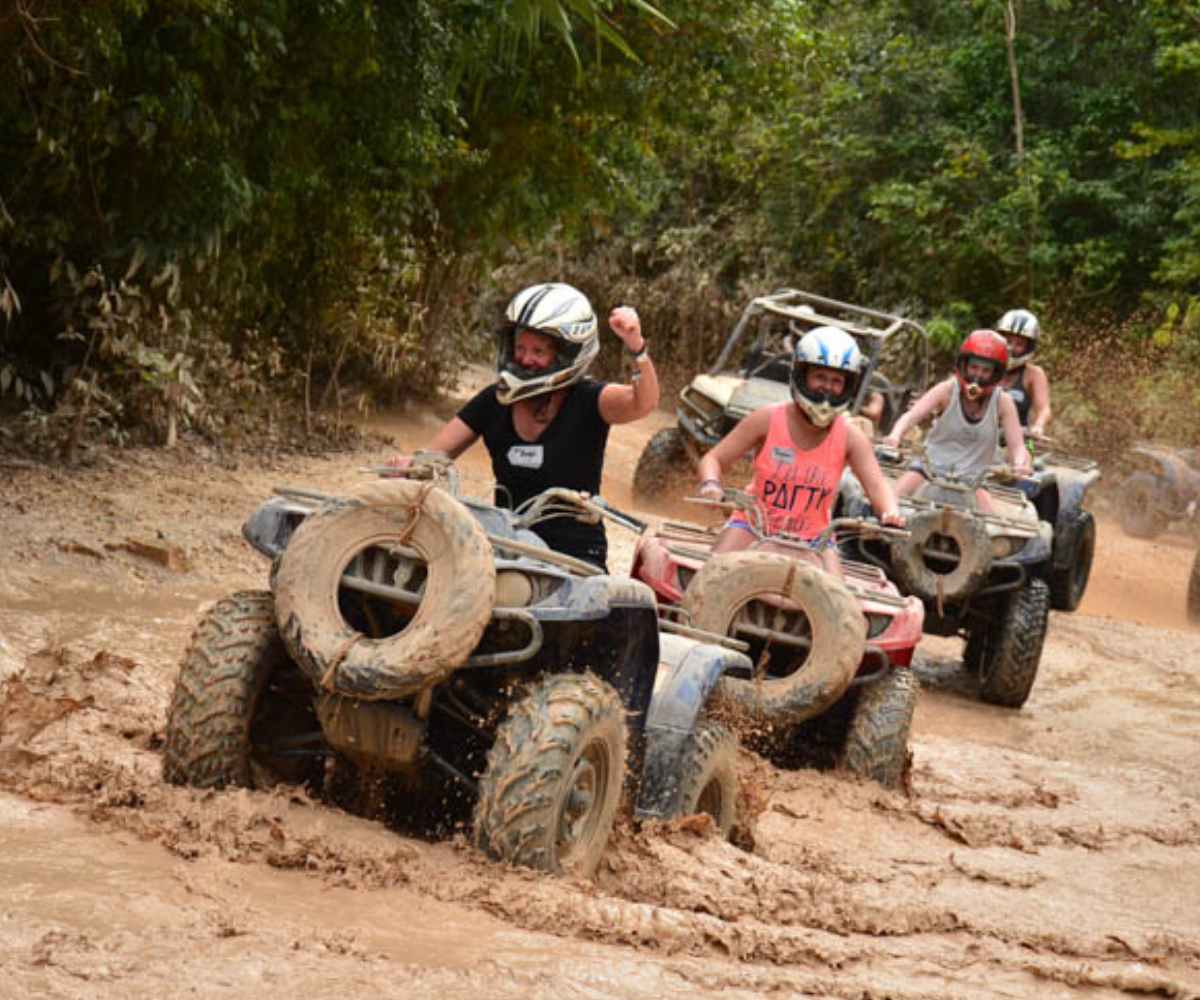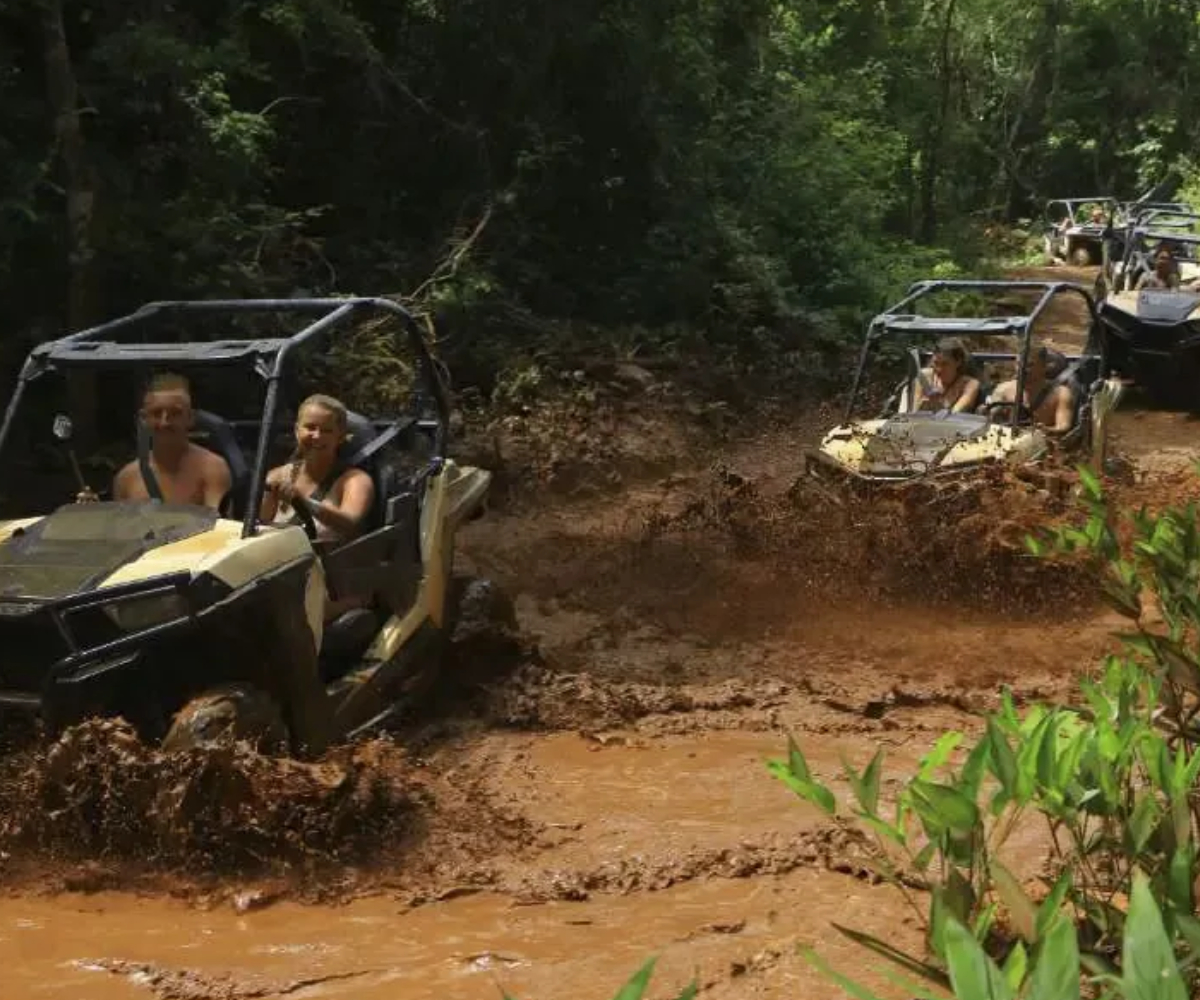 ¡Vive la mejor aventura todo incluido en Cancún y Riviera Maya! Comienza el día desafiando la tirolesa Tarzania, una de las más rápidas del mundo, y siente la emoción de volar por encima de la selva. Luego, toma el volante de un buggy Polaris RZR o un poderoso ATV y rasga un poco de lodo en un circuito todo terreno lleno de adrenalina.