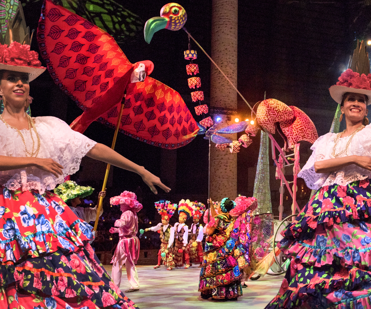 El show de Xcaret rinde homenaje a la diversidad cultural de México. Entre las presentaciones destacan: